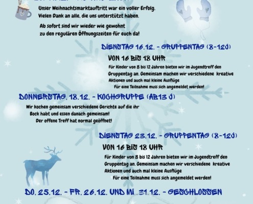 Im Dezember erwartet euch im Jugendtreff ein abwechslungsreiches Programm mit spannenden Aktionen und unterhaltsamen Spielen. Jeden Dienstag bieten wir einen speziellen Gruppentag an, der sich besonders an Kinder…