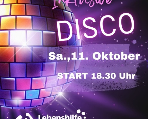 AllgemeinDie Offenen Hilfen der Lebenshilfe und der Neustädter Jugendtreff Lazarett laden wieder alle Jugendlichen und junge Erwachsenen zur nächsten Inklusiven Disco ein! Unser DJ erfüllt eure Musikwünsche, das Thekenteam serviert zur Erfrischung…